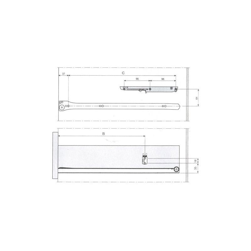 Cet amortisseur de marque Indaux peut être monté à droite ou à gauche, sur des tiroirs en bois équipés de coulisses à galets ou à billes et permet leur glissage en douceur.