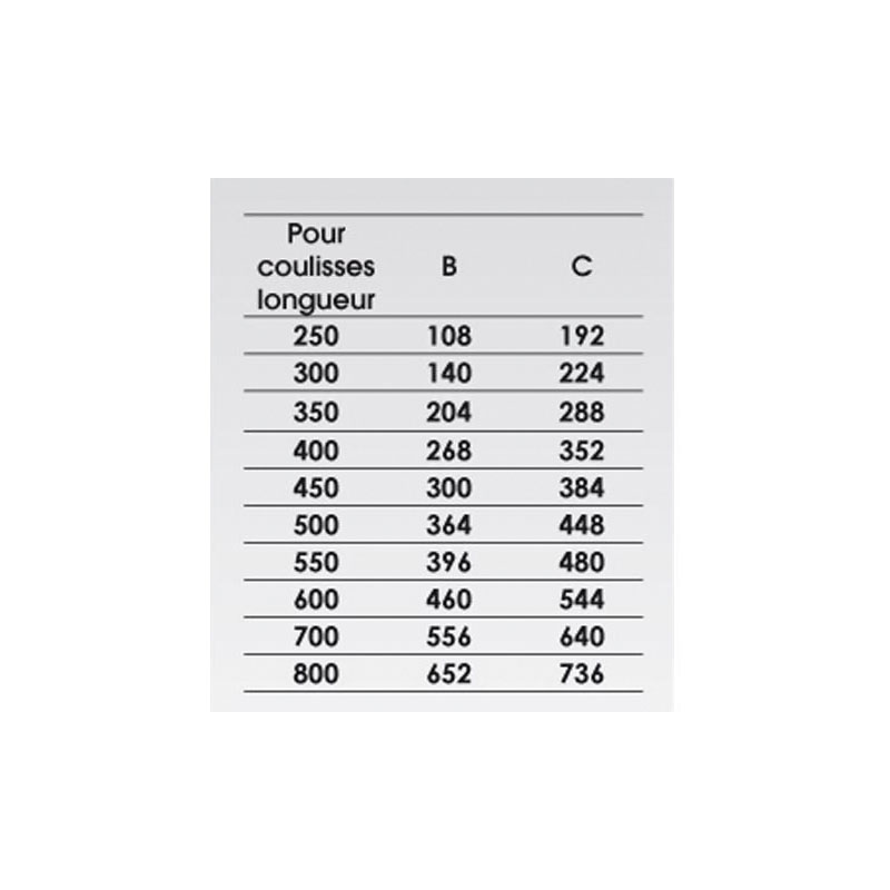 Pour connaitre les distances de fixations, vous pouvez vous aider du plan et du tableau (B pour l’amortisseur et C pour l'entraineur).