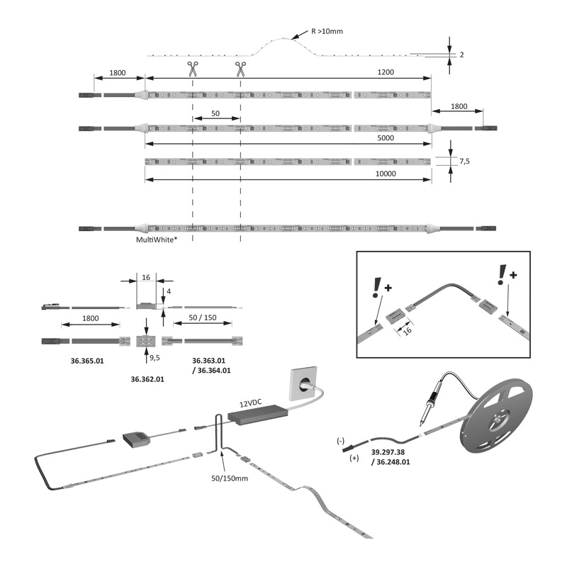 Câble d'alimentation bilatéral pour les bandes de 5 ML (voir schéma)