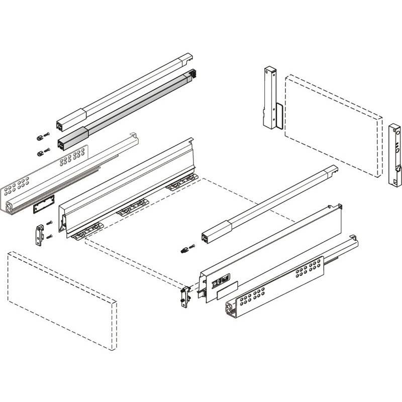 Se fixe entre le côté de tiroir et le bandeau supérieur.
