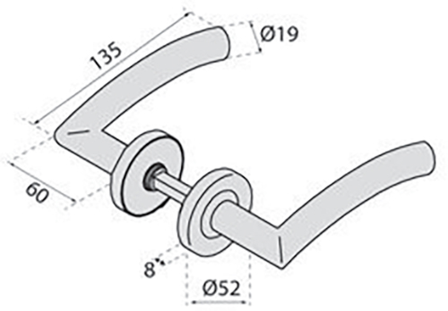 Béquilles Ø 19 mm, avec rosace Ø 52 mm munie d'un ressort de rappel.
