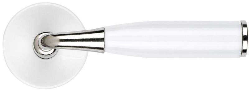 Béquille simple porcelaine et laiton décor nickelé, sans rosace.