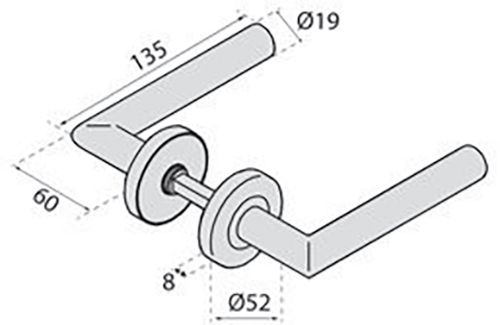 Béquilles Ø 19 mm, avec rosace Ø 52 mm, munie d'un ressort de rappel.