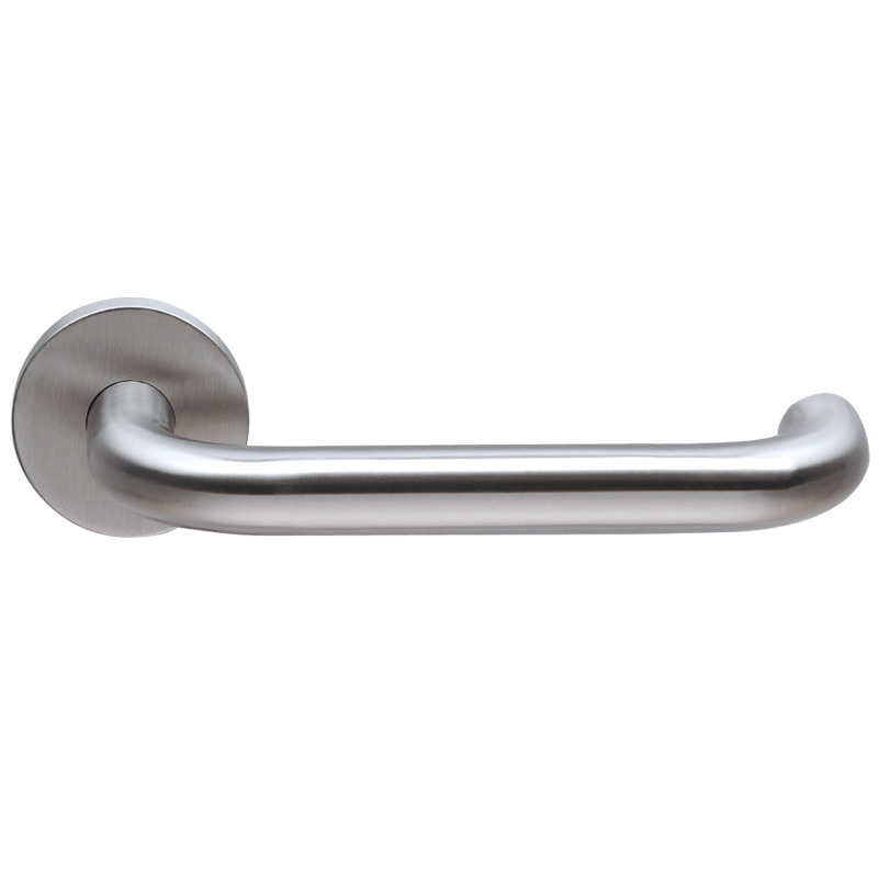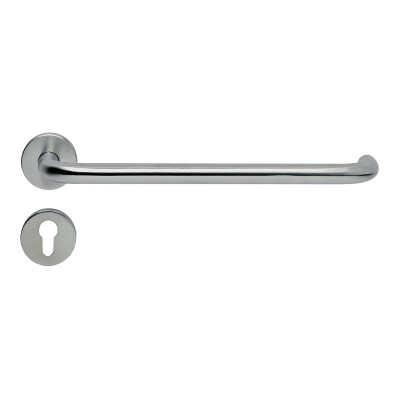 Avec rosaces de béquilles rondes solidaires des béquilles, sous-rosaces en acier nickelé munies d'un ressort de rappel.