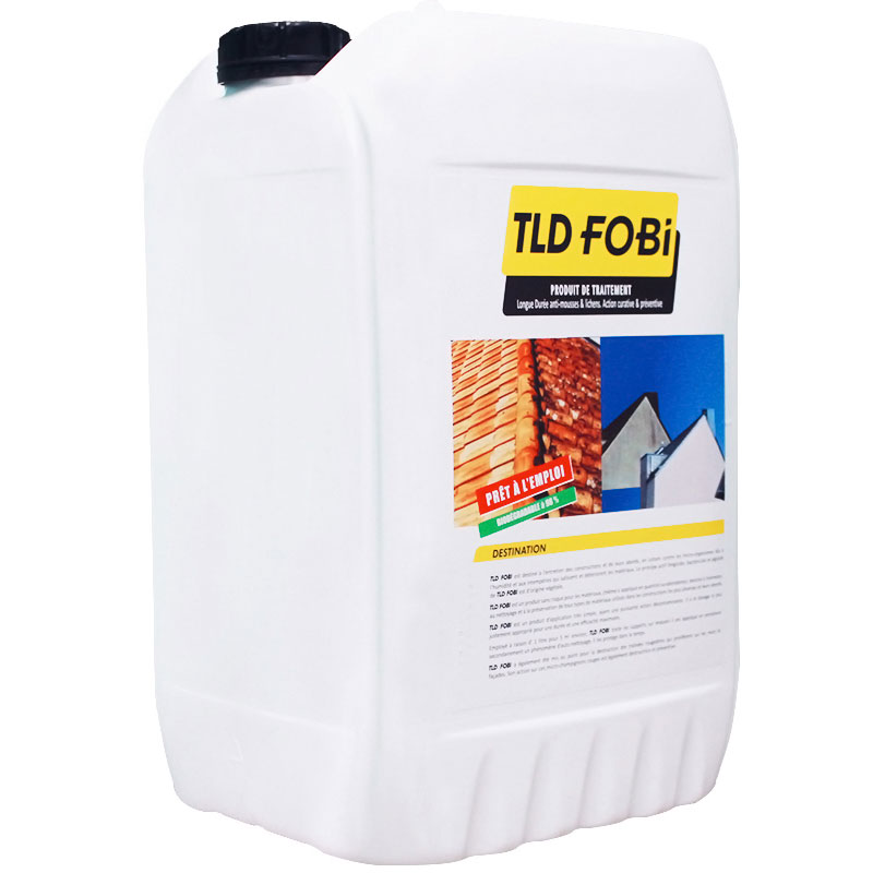 Bidon de produit de traitement anti-mousses et lichens de marque FOBI
