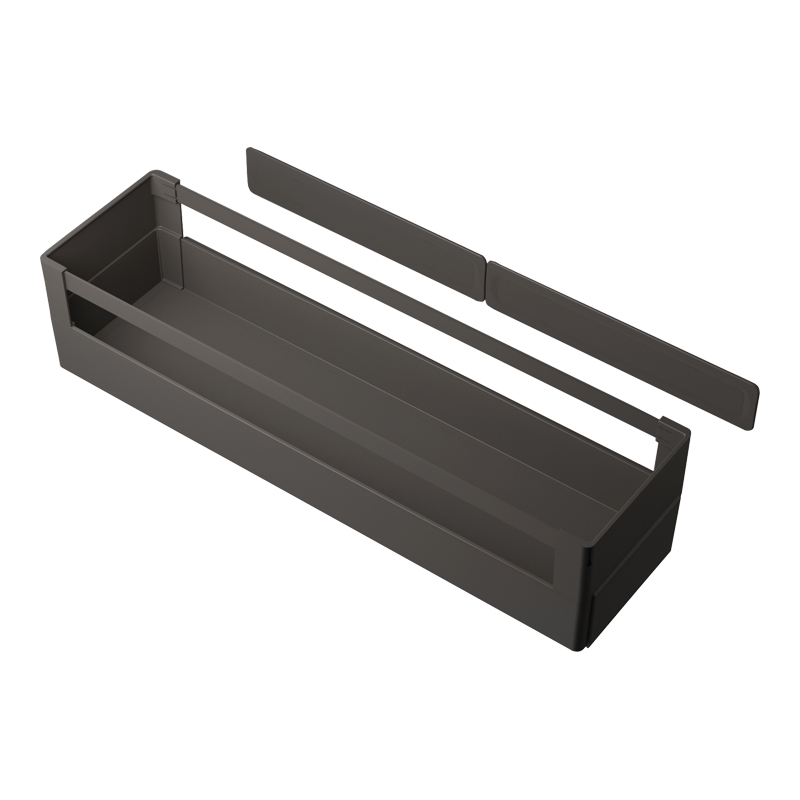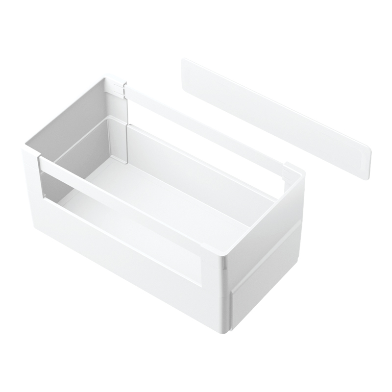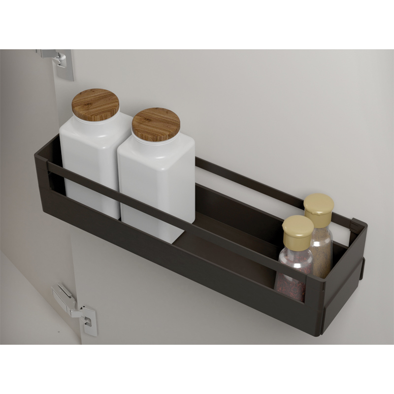 Boite de rangement avec support pour fixation sur porte intérieure de meuble.