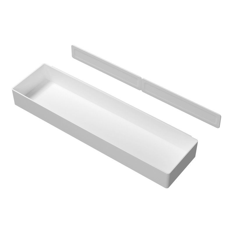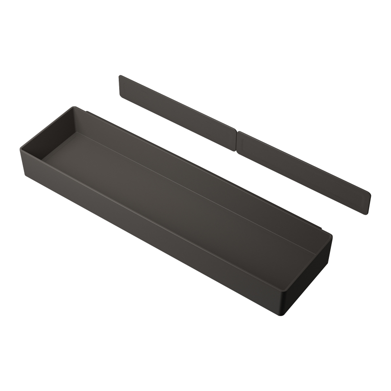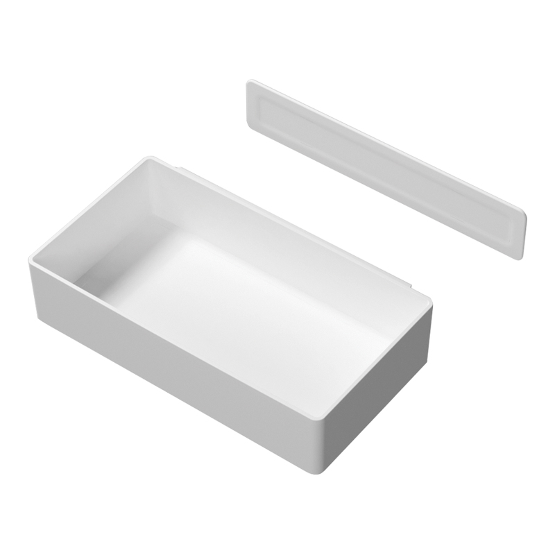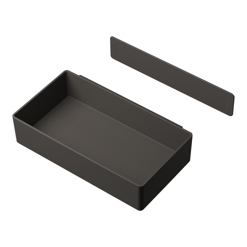 Boite de rangement avec support pour fixation sur porte intérieure de meuble.