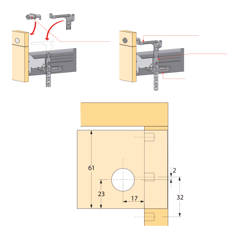 Boîtier à retour automatique Stop Control à droite de marque HETTICH