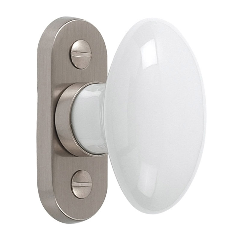 Bouton porcelaine sur platine laiton décor inox brossé.