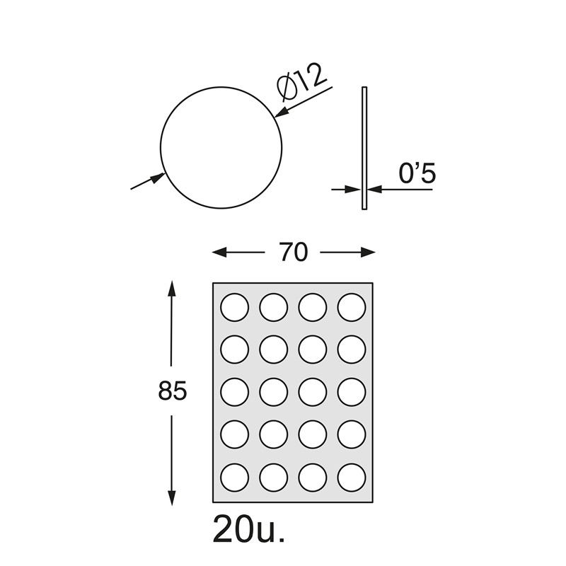 Vendu au sachet de 400 caches (4 plaquettes de 100 pièces).