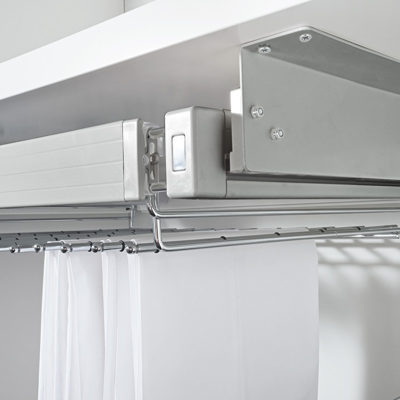 Coulisses à sortie totale équipées d’un rappel en fin de course sur amortisseur.