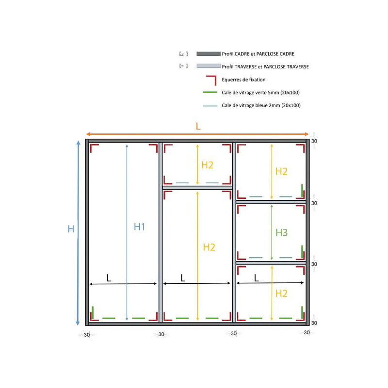 Cales épaisseur 5mm : fixation sur les profils et parcloses pour séparation verrière.