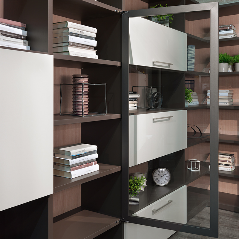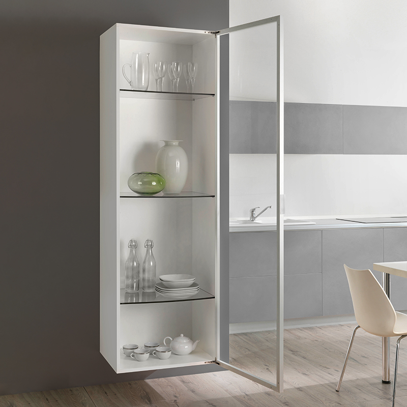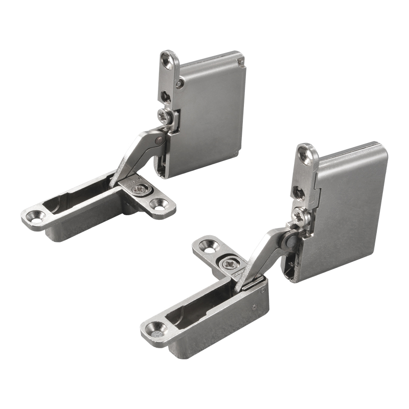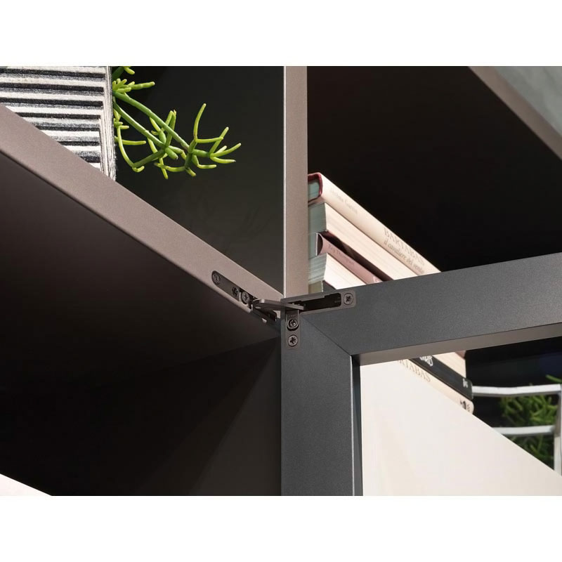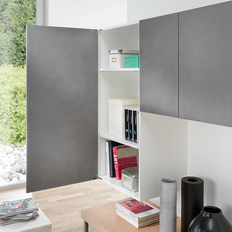 Les charnières Air, avec un système d'amortissement intégré et avec ouverture Push, ont un esthétique compact et discret. Elles peuvent être installées dans le panneau haut et bas du meuble.