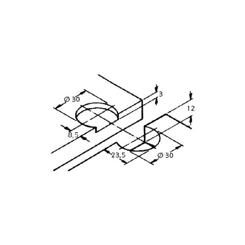 Elle est réalisée en zamak, a un diamètre de 30 mm et un recouvrement de 16 mm.