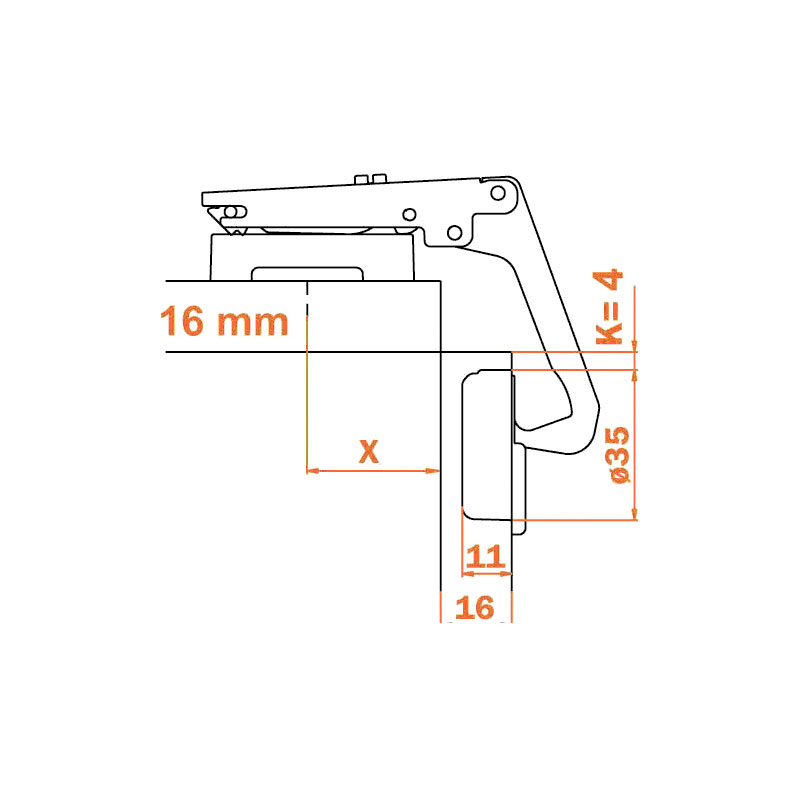 Cette charnière invisible de marque SALICE est destinée aux meubles d’angle.
