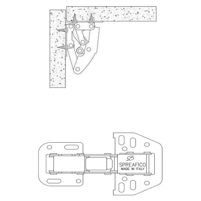 Charnière invisible en applique avec butée de marque TCASYSTEM