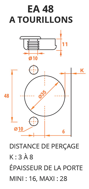 Charnière invisible à ressort ouverture 165°. Tête zamack et bras acier nickelé. CHARNIÈRES logica Vendu à l'unité