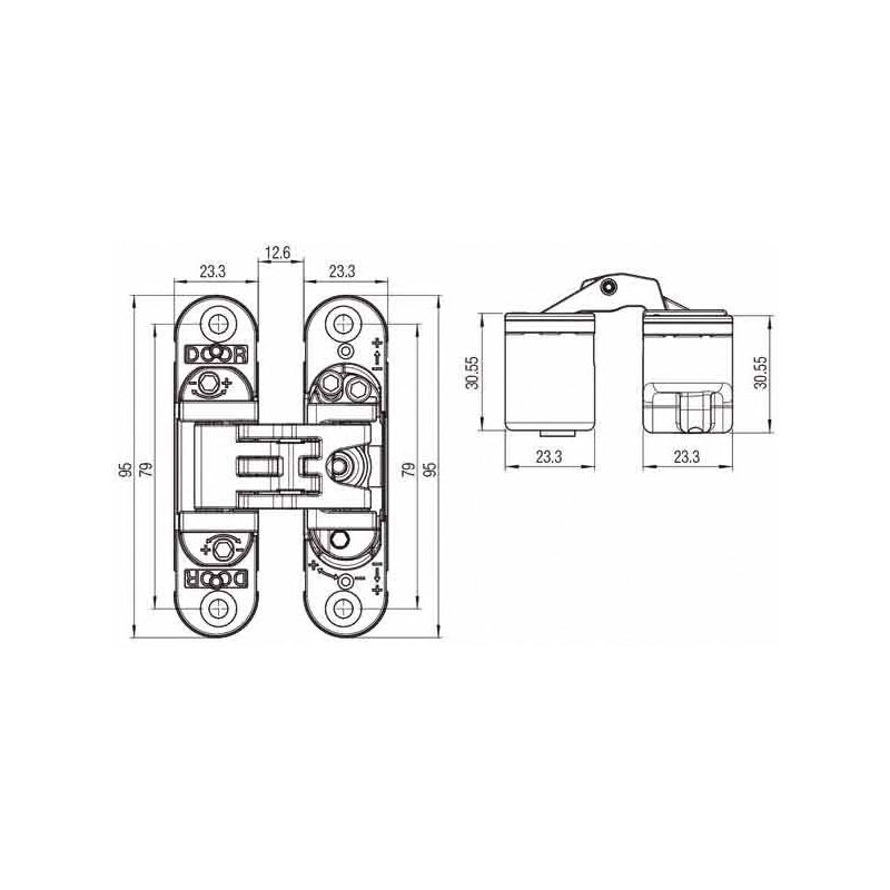 Charnière invisible pour porte d’intérieure réglable en 3 dimensions.