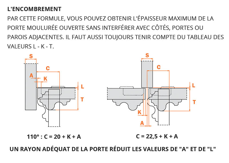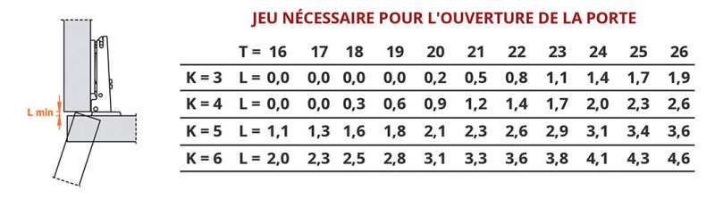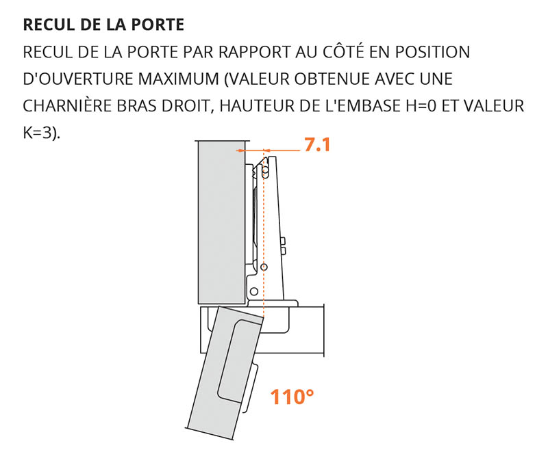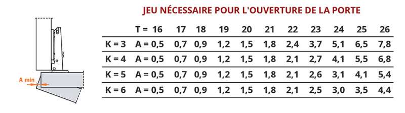 | Référence | Coudure de charnière | Entraxe | Fixation | Montage | Ressort | Dispo. | Prix TTC | UV | Unité de Vente | Qté | |