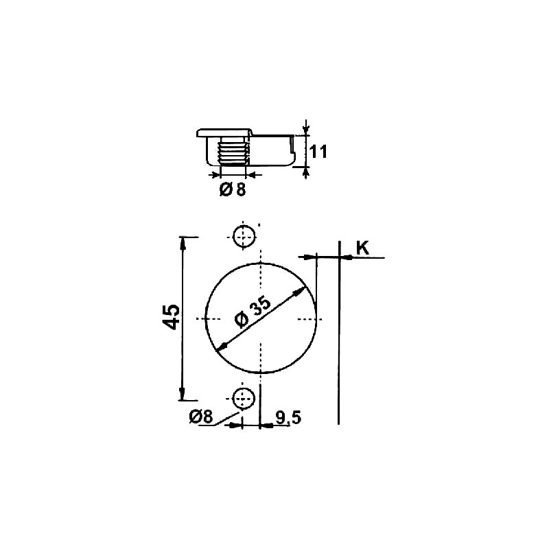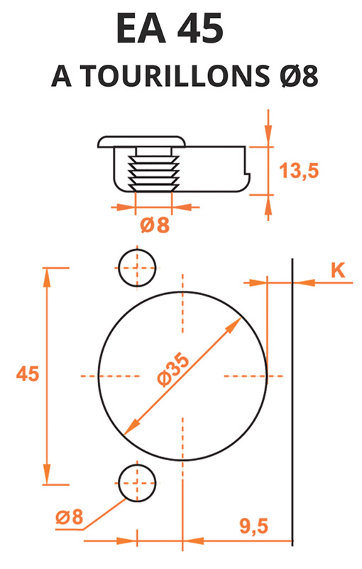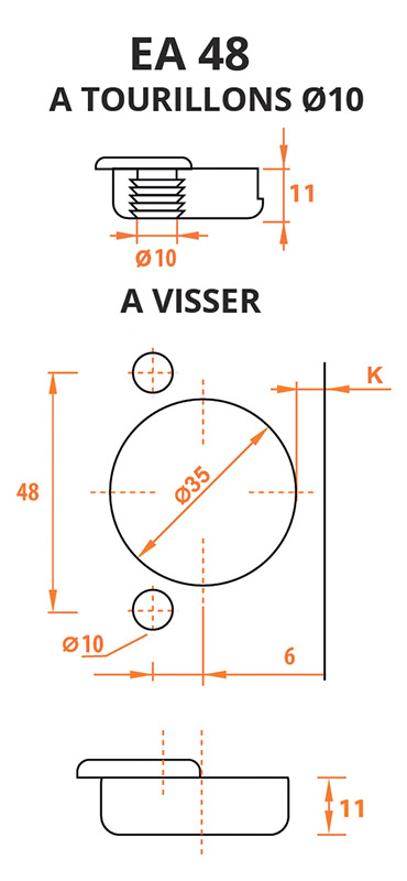 Un perçage de profondeur 11 mm dans la porte permet le positionnement de cette charnière.