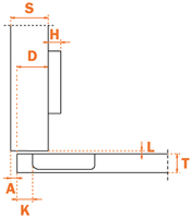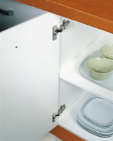 Charnière invisible Salice série 100, avec ressort, pour panneau de faible épaisseur mini 10mm.
