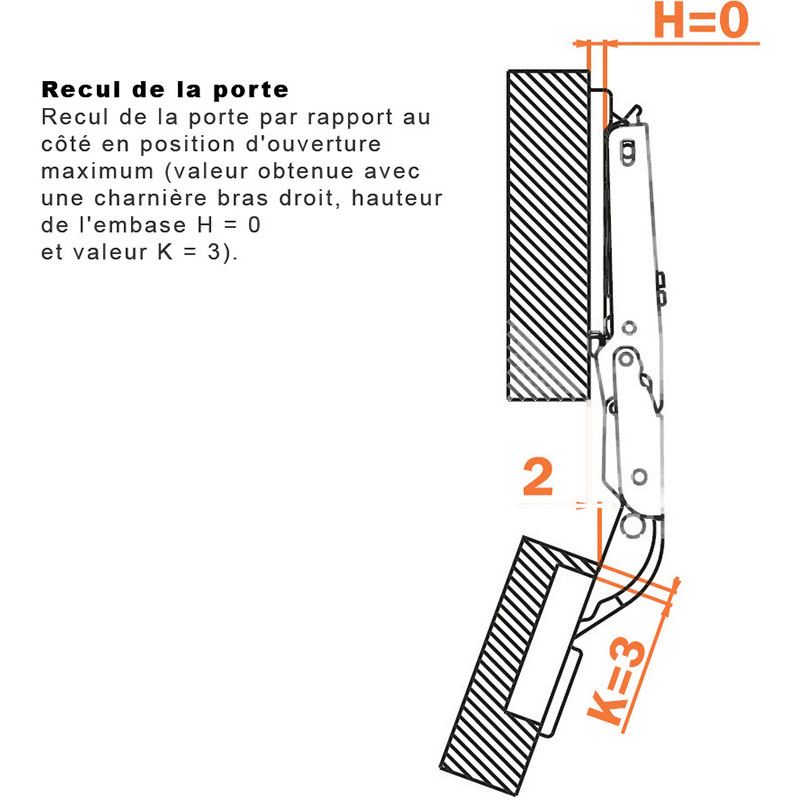 Charnière invisible SALICE destinée aux portes en bois et adaptée aux portes à moulure ou à montage avec feuillure.