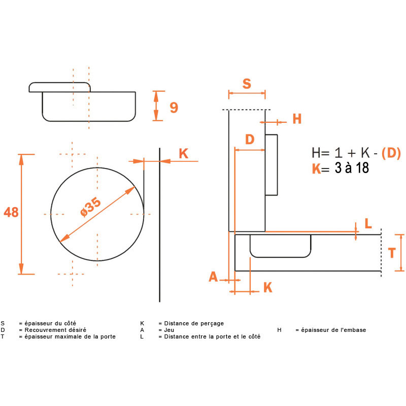 Charnière invisible - Pour porte en bois - 110° - Série B de marque SALICE