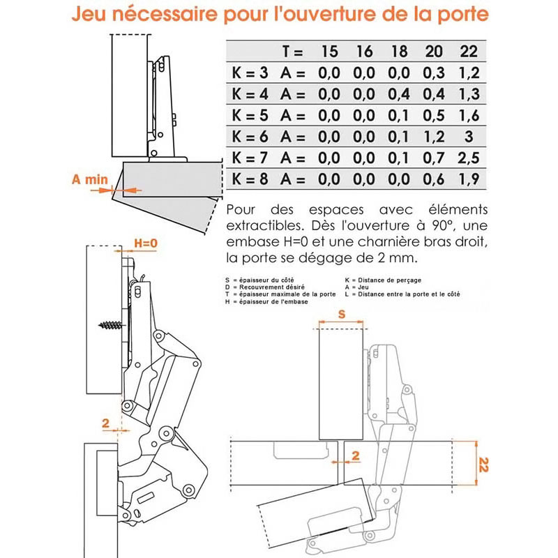 | Epaisseur porte maxi | 22 mm |