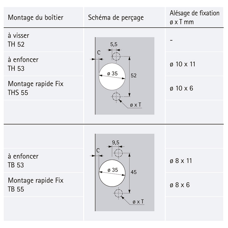 Charnière invisible clipsable avec amortisseur intégré dans le bras.