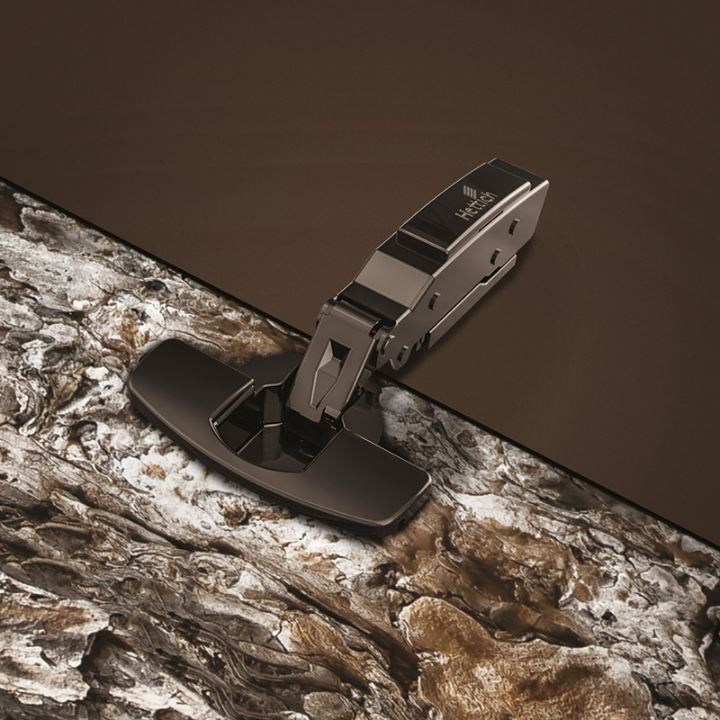 Charnière invisible clipsable avec amortisseur intégré dans le bras.