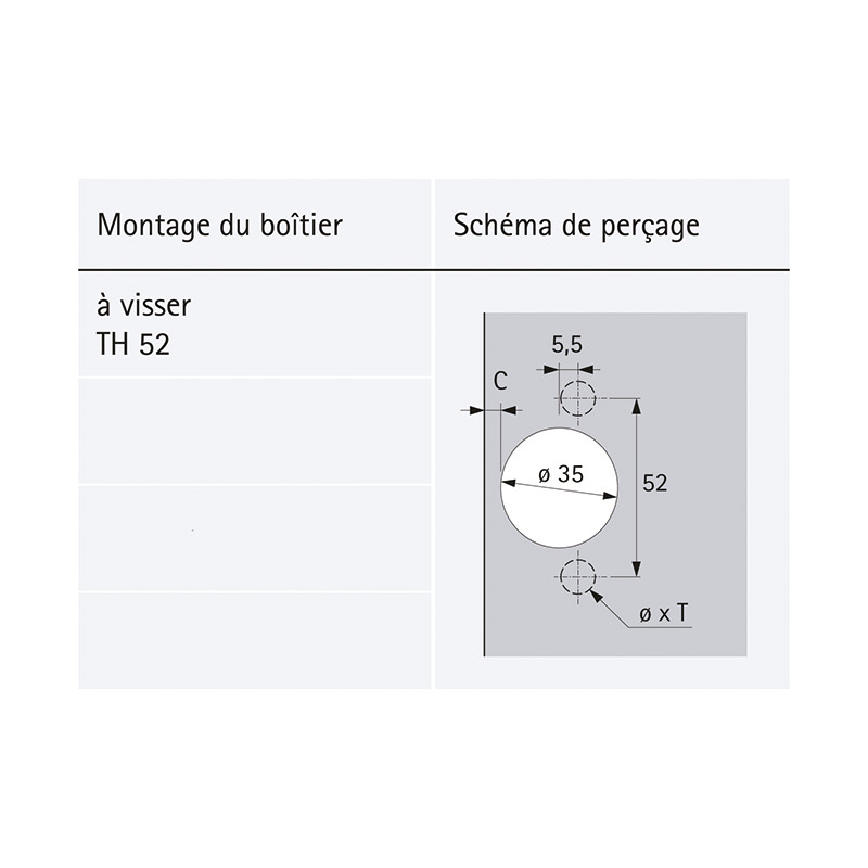 - Réglage du recouvrement intégré + 2 mm / - 2 mm