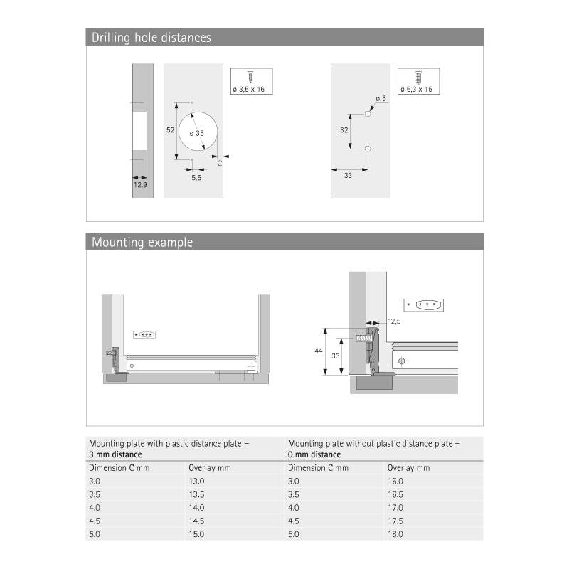 | Epaisseur de porte mini | 16 mm |