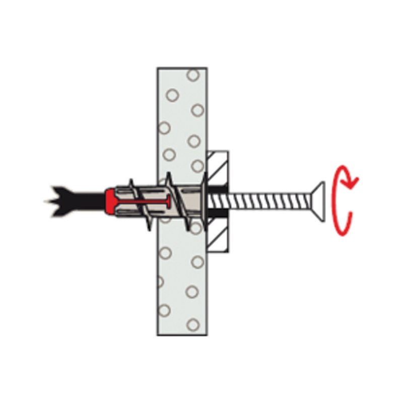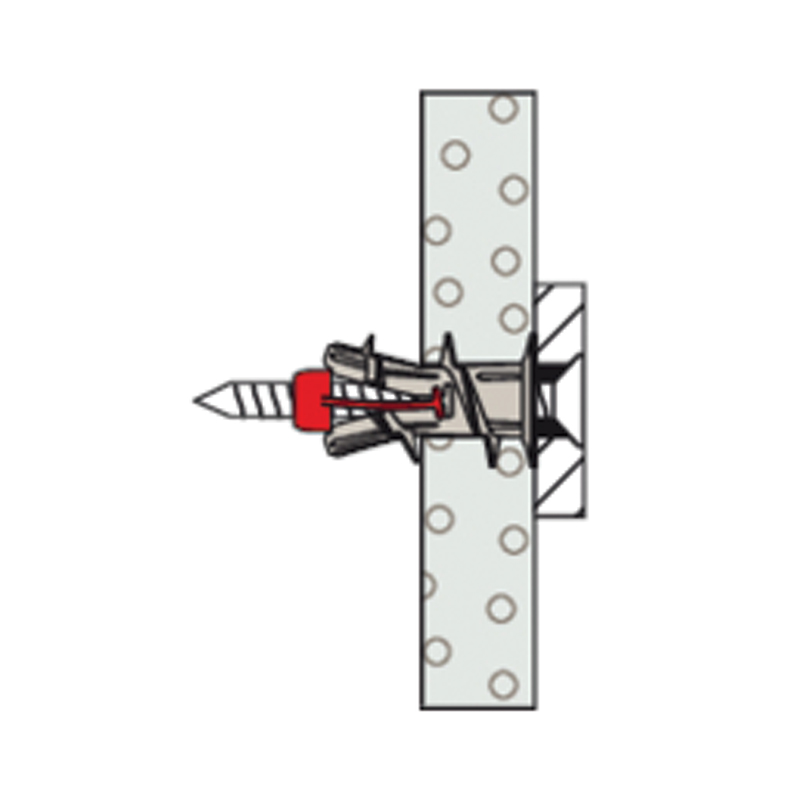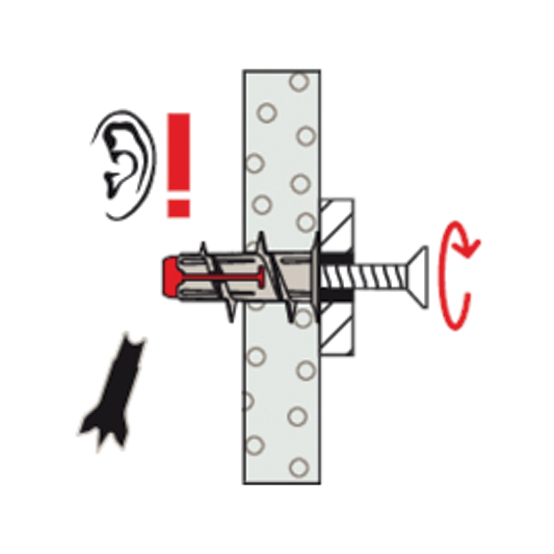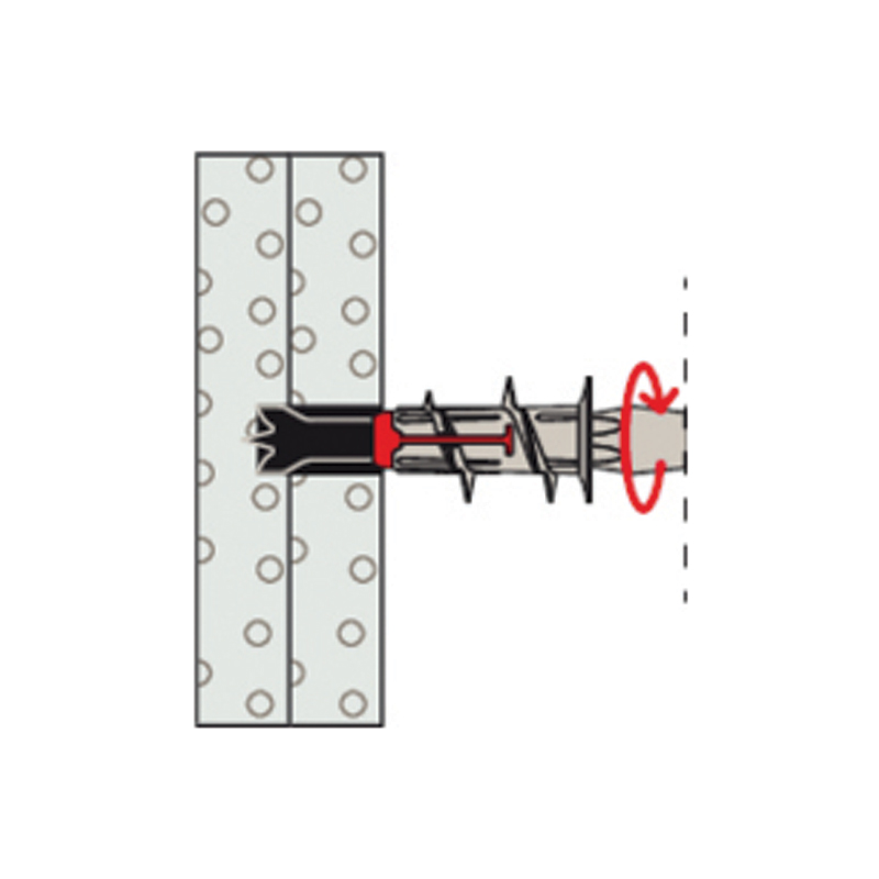 Elle permet un montage facile et rapide dans les plaques de plâtre simples ou doubles, sans pré-perçage. Dans les plaques de fibro-ciment, il est recommandé de pré-percer avec un forêt de Ø 8mm.
