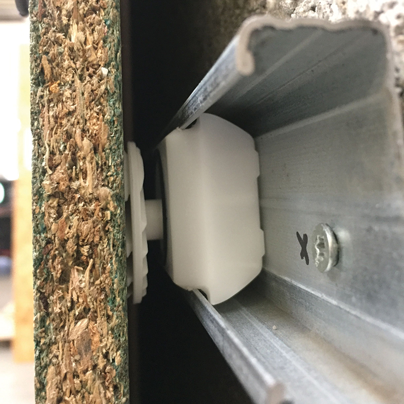 Isolation accoustique grâce à l'espace entre le panneau et la structure : écart de 10,5mm au 1er cran et de 6mm en position finale.