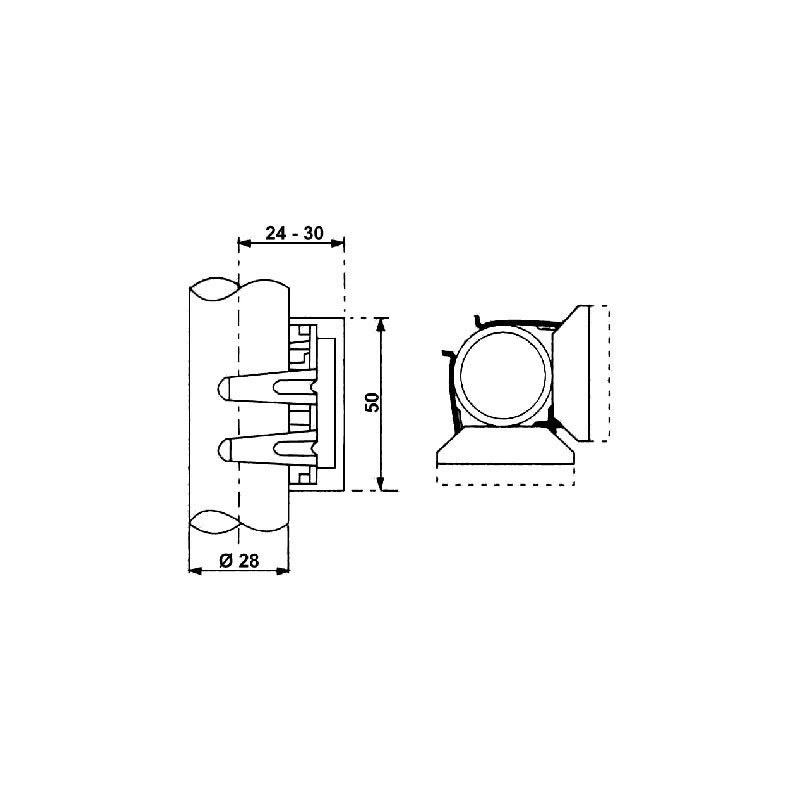Il est réalisé en acier zingué sur platine en PVC noir et a un écartement de 24 mm ou de 30 mm de l’axe du pied, selon le modèle.