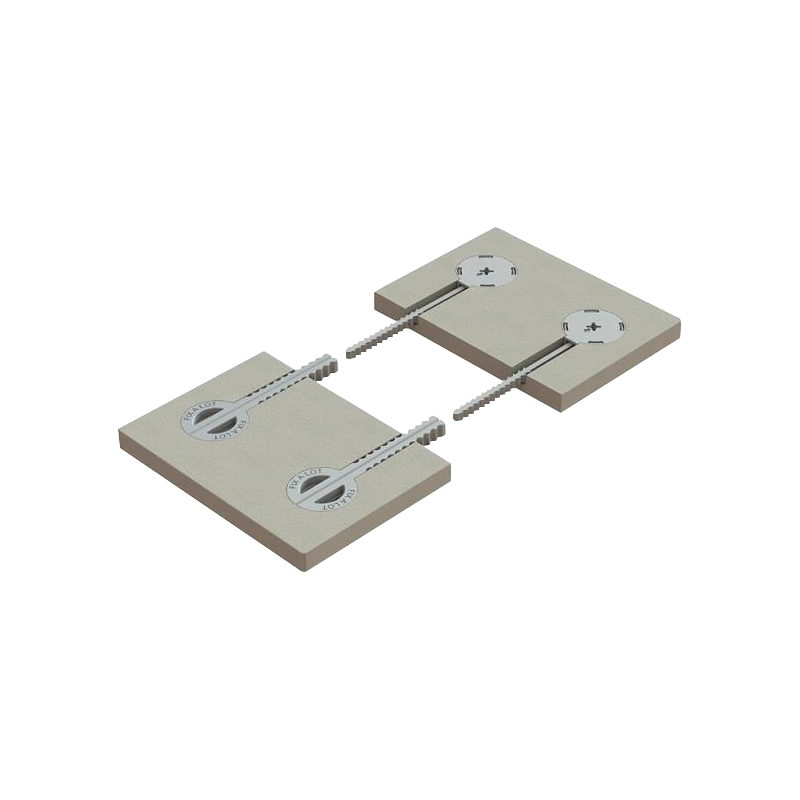 Connecteur d'assemblage de plan de travail ou panneaux de faible épaisseur (10mm et plus), composé d'une partie mâle et une partie femelle.
