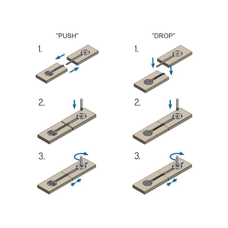 - "push" : la partie mâle vient se glisser dans la partie femelle en resserant les panneaux