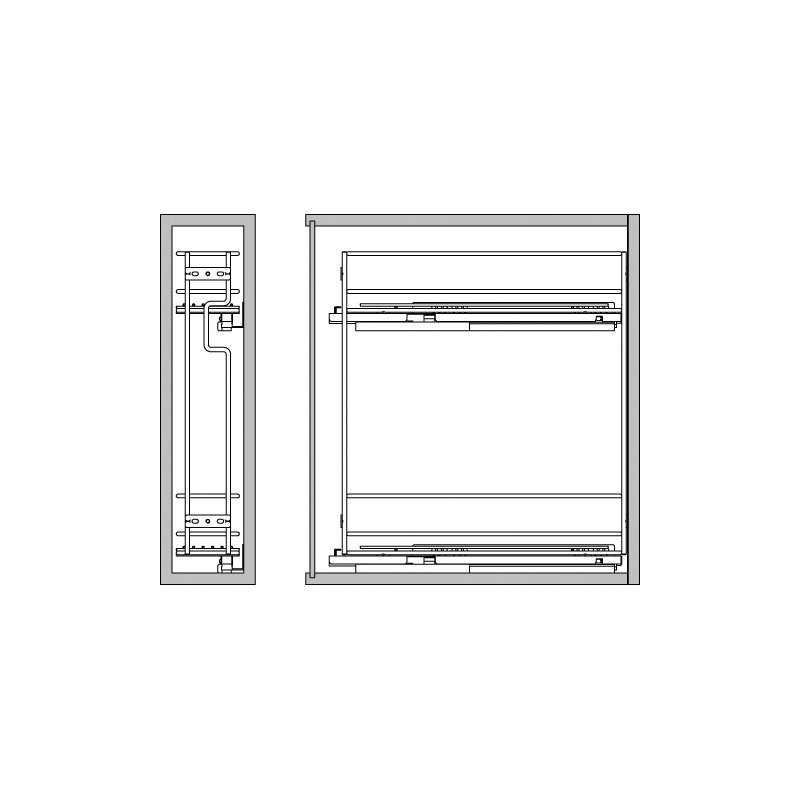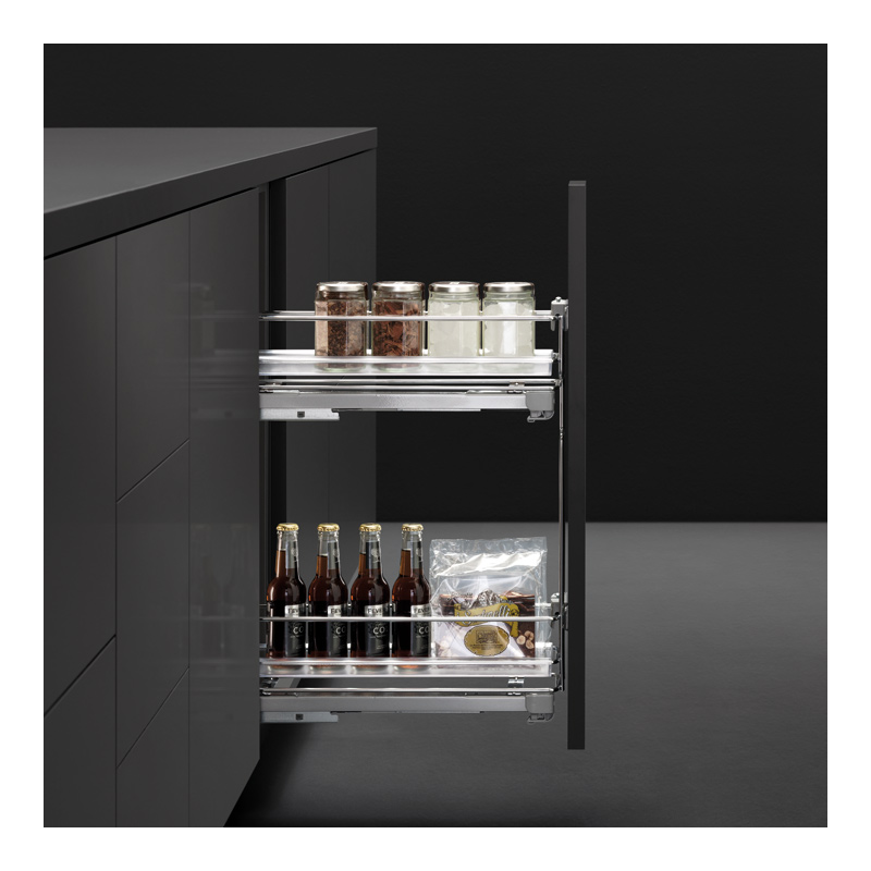 Coulisse sortie totale avec rappel en fin de course sur amortisseur.
