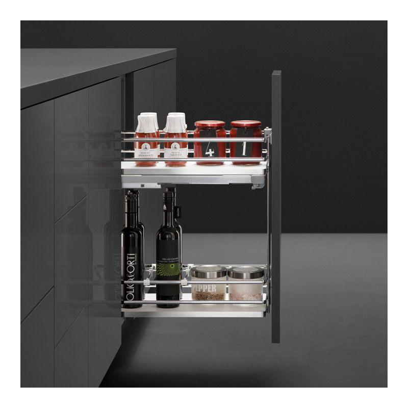Pour un agencement malin de votre cuisine, optez pour ce coulissant bas à 2 étagères à sortie totale. Il est parfaitement adapté aux caissons de 400 mm de largeur.