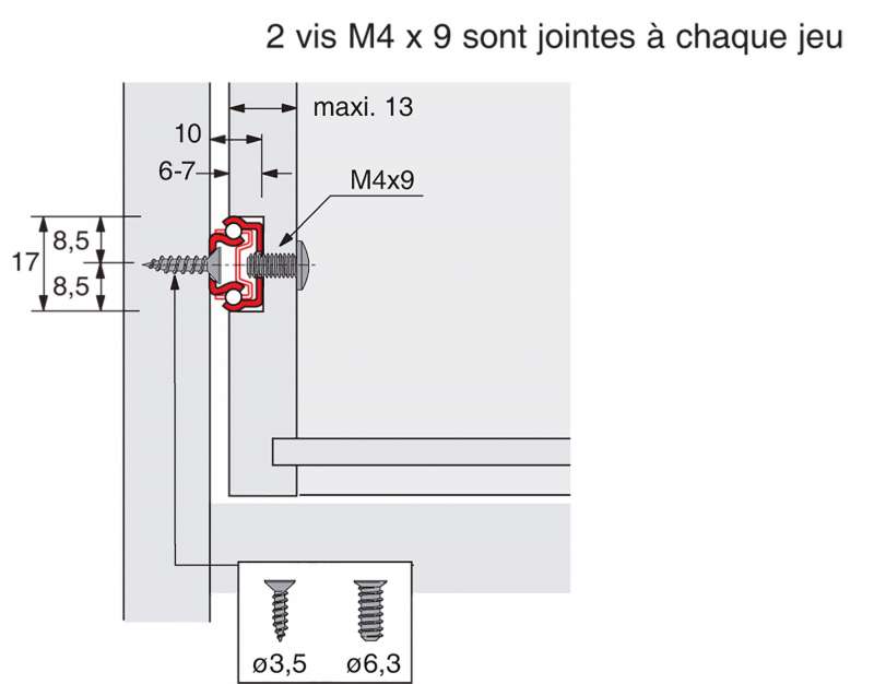 Leur rail de guidage et leur cage à billes constituent une unité inséparable. Elles ont une capacité de charge conforme à la norme EN 15338, niveau 1. Ces coulisses sont munies d'une flèche qui indique le sens du montage.