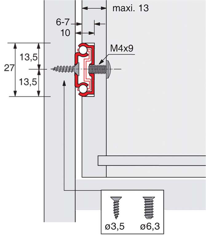 Coulisses de tiroir à billes - 12 kg - Sortie 3/4 - KA 270 28535 28535 HETTICH