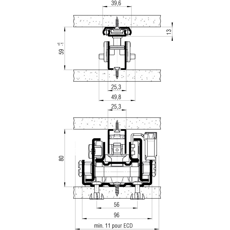 Montage rapide et aisé par technique de glissement.