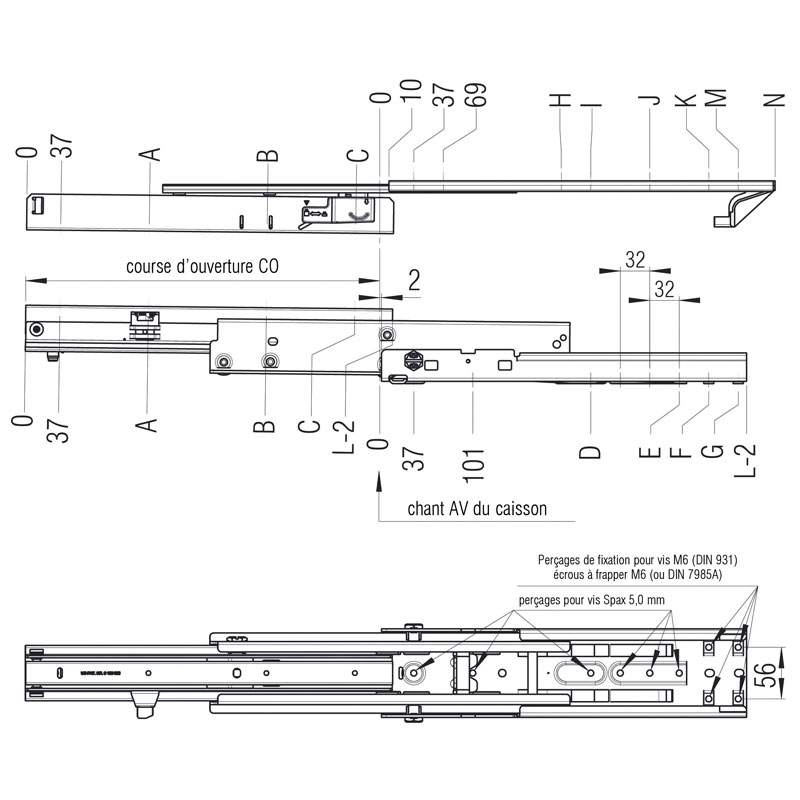 Coulisse à sortie différentielle avec guidage opposé - FR771