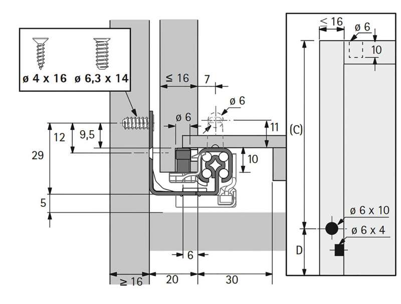 Coulisse bois Quadro 25 Silent System 58948 58948 HETTICH
