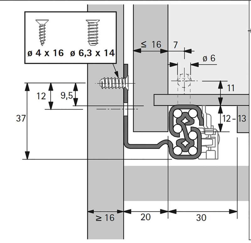 Coulisse bois Quadro V6 Push to Open 58942 58942 HETTICH