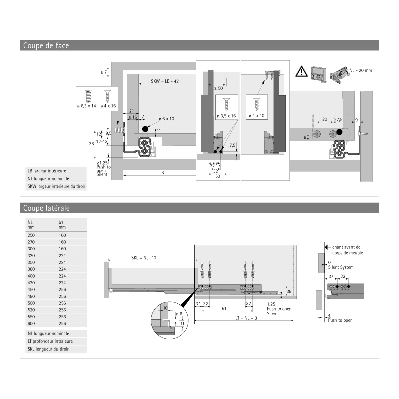 Coulisse Quadro You pour tiroir AvanTech You ou tiroir en bois avec clips.