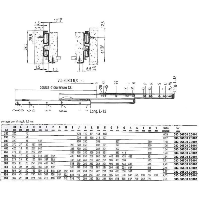 Coulisses de tiroir invisibles à galets - 50 kg - Sortie totale 11191 11191 FULTERER