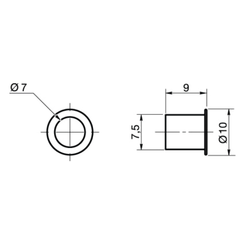 Douille acier à collerette, pour taquet battoir queue Ø7.