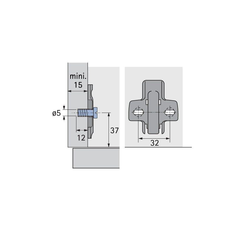 Embase cruciforme - Pour charnière Sensys et Intermat - Eurovis 23379 23379 HETTICH