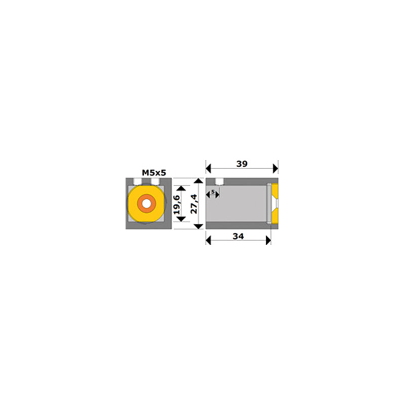 Embase de raidisseur de cabine de douche départ 90 degrés, pour tube rond d.19mm ou tube carré section 19x19mm.